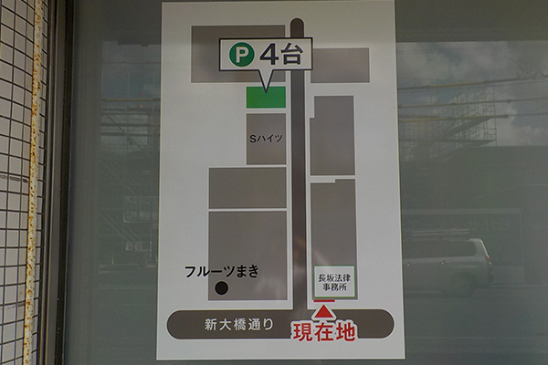 長坂法律事務所は、JR「松江駅」から徒歩5分の場所にあり、事務所付近の専用駐車場をご利用いただけます。初回相談は無料で、月・火・木・金・日曜日の9:00~18:00にご相談を受け付けています。